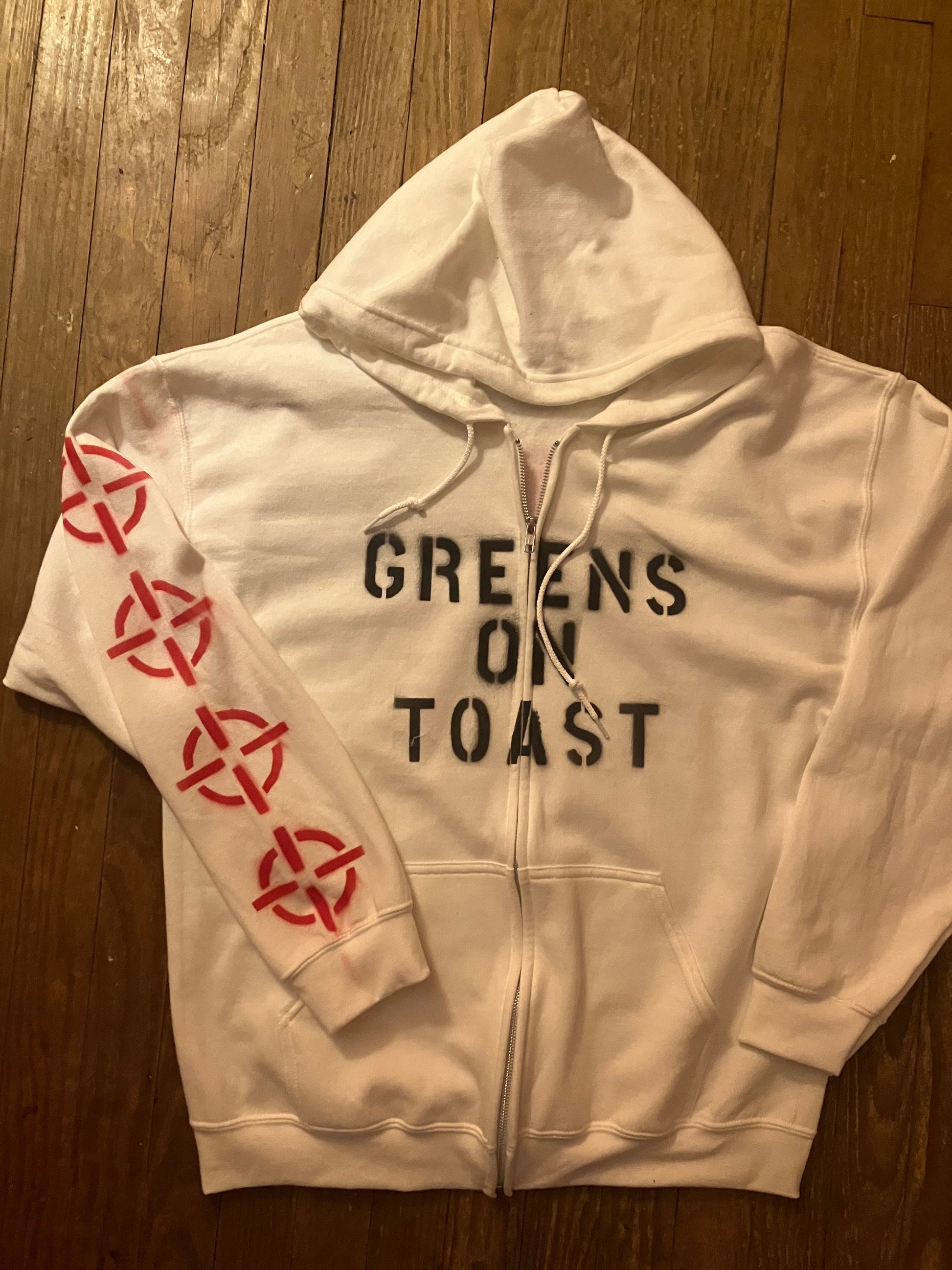 zip up hoodie? awesome very retro and cool.. that price? sorry the blanks are stupid expensive i gotta make my margins!!! but hey where else can you get a dope hoodie with arm prints AND a back print... you have to buy this!!! now!!!! take your moms debit card!!!
